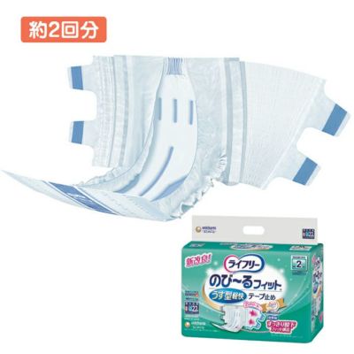ライフリー のびーるフィットうす型軽快テープ止め 大人用おむつ 吸収量300cc 1ケース(4袋) は、のび~るテープで体になじんでつけ心地スッキリ。寝て過ごすことが多い方におススメです。パッドと一緒に使用するカバータイプです。吸水量の300cc!(1ケース/4袋入) 男女兼用タイプです。