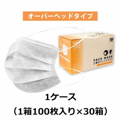 2層マスク(頭掛け)A-503 1ケース(1箱100枚入り×30箱) 立体プリーツ不織布マスク