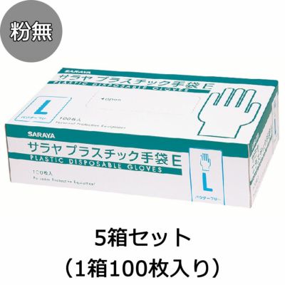 サラヤ プラスチック手袋E 粉無し 5箱セット(1箱100枚入り) 使い捨て手袋 は、素手感覚で使用できる、伸縮性のある薄手仕上げの粉無しタイプの使い捨て手袋です。まとめ買いにお得な5箱セットでの販売です。