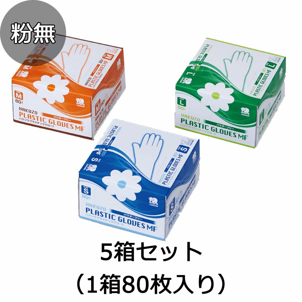 ハクゾウ プラスチックグローブMF パウダーフリー 5箱セット(1箱80枚入り) 使い捨て手袋