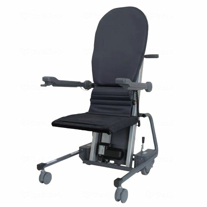 いろいろな形で立ち上がりをサポートする電動昇降椅子です。肘掛ははね上げ式ですので、車椅子やベッドへの移乗が楽にできます。