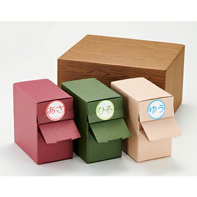 ・色が3色(ベージュ、レッド、グリーン)のカラーボックスで区別できるので、朝・昼・晩と分けておくことができます。