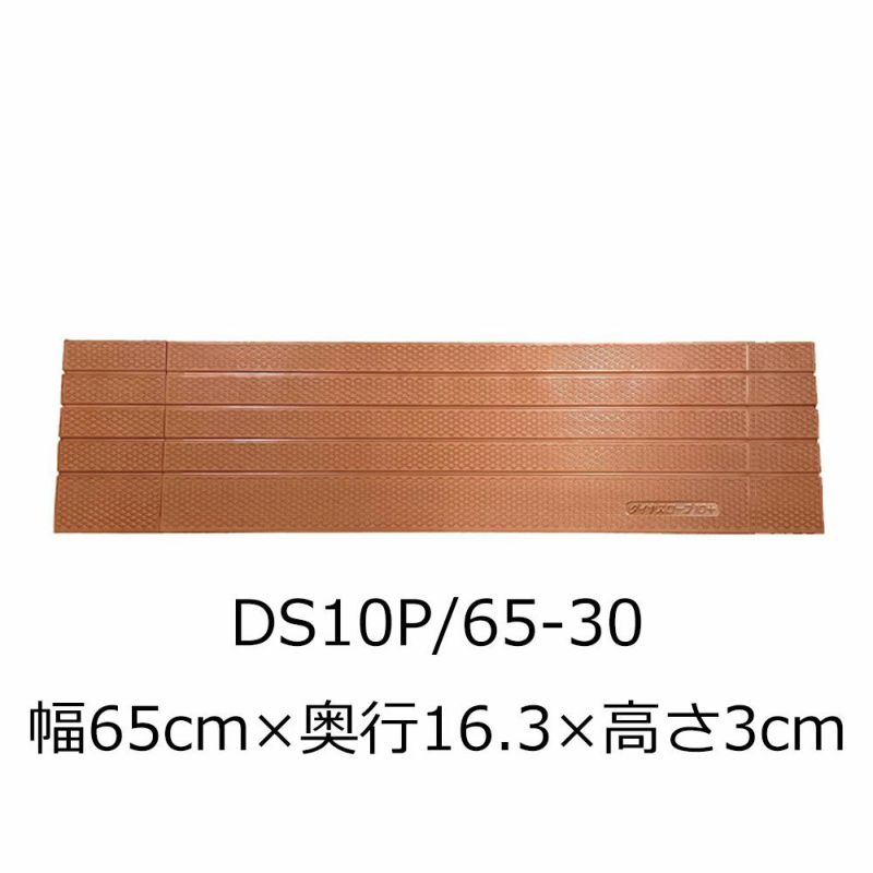 他の画像を見る 即日発送 屋内用段差解消スロープ ダイヤスロープ10+ DS10P 65-30 高さ3.0cm スクリオ販売価格 ¥ 7,920 税込 置くだけ簡単設置ですぐに使える屋内スロープです。ゆるやかな勾配10度、表面は滑り止め効果の高いダイヤカット形状、スロープの組み合わせで幅を調節できる屋内スロープです。こちらは溝は4本で高さは3cmです。 お気に入りに登録する
