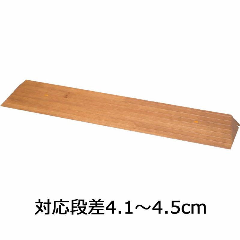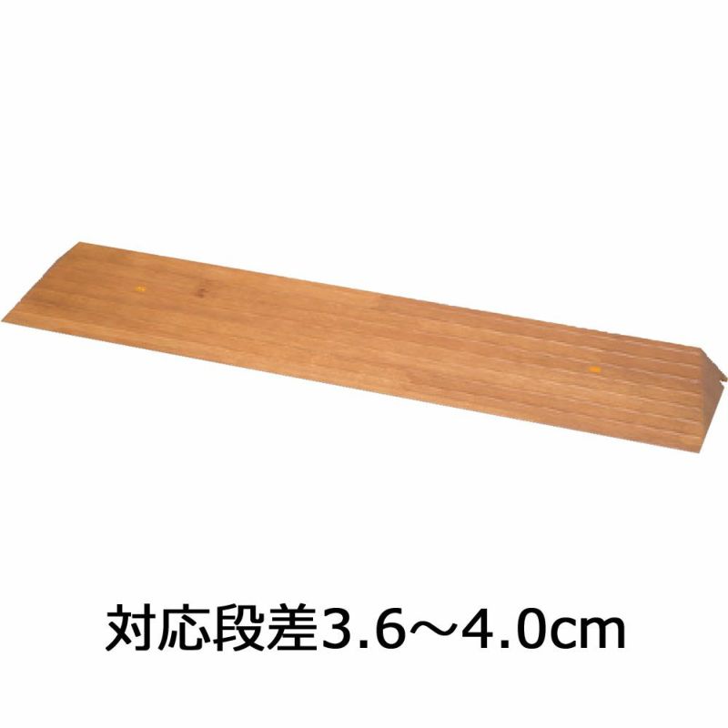 居住空間になじむ木目調のシンプルなデザインの樹脂タイプの屋内用スロープです。 対応段差は1.5~2.0cmと2.0cm~3.0cmです。