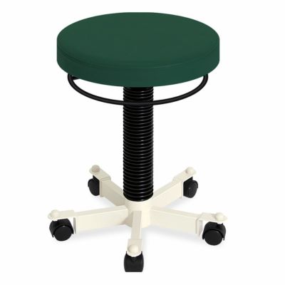 座高の調節がどの位置からでも自由におこなえる、低床の360度回転座面シートの施術・診察椅子です。