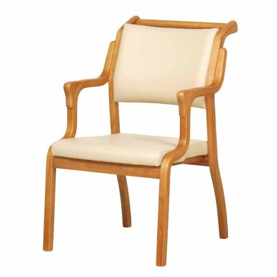木部はライトブラウン、座面カラーはアイボリーと落ち着いたイメージでご家庭や、施設の背景を邪魔しないナチュラルな雰囲気です。