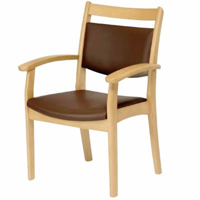 木部はライトブラウン、座面カラーは落ち着いたブラウンでホテル風の椅子のイメージです。 介護・福祉施設の食堂などの椅子としてオススメします。