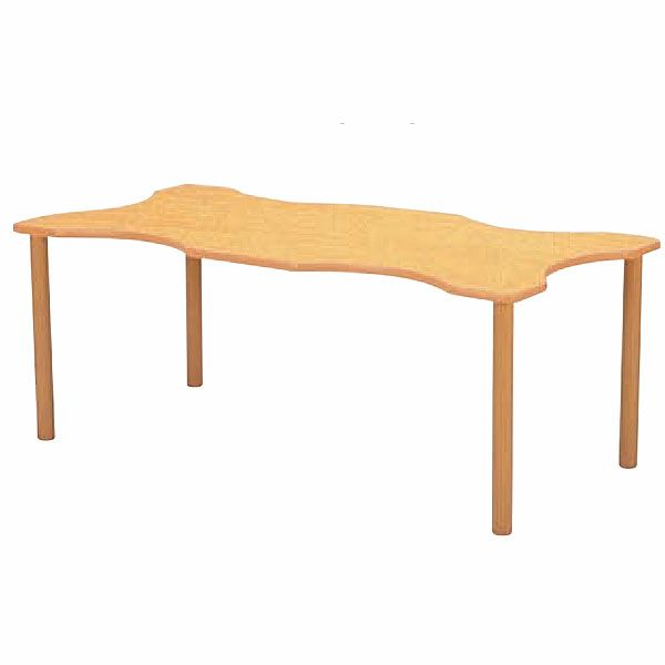 アジャスター部を回転させることにより最大5cmまで高さ調節のできる幅180×90cmの長方形の施設用テーブルです。多目的に利用したりする施設に便利な施設用の机、テーブルです。天板がわん曲した変形タイプで車いすもラクラクです。