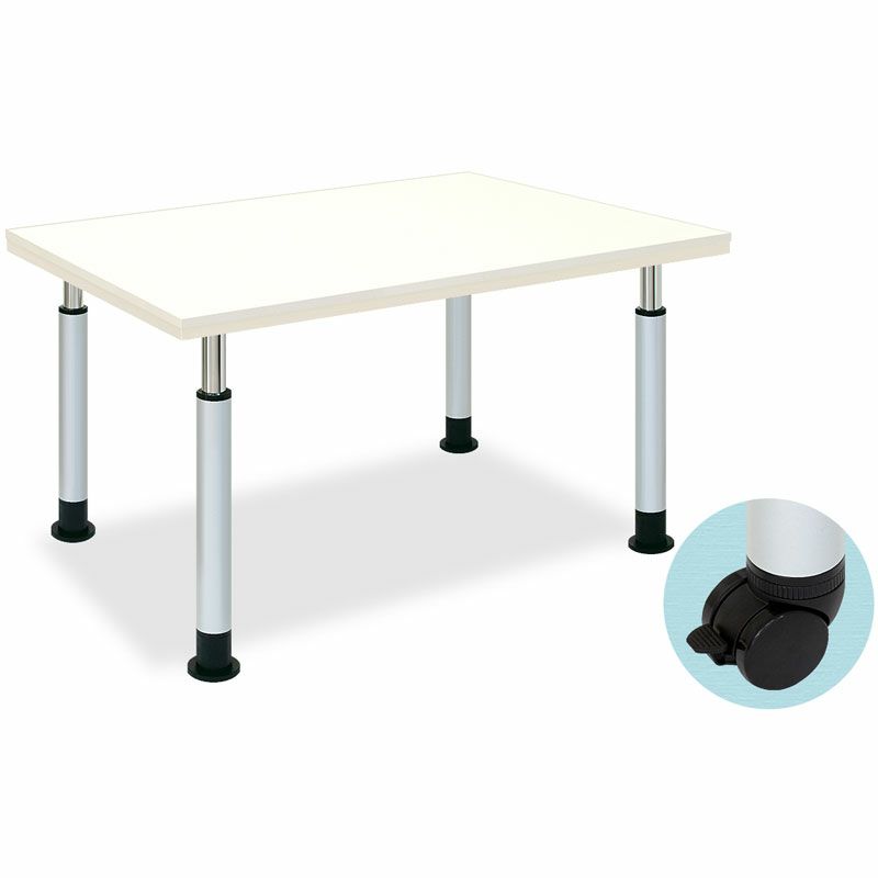 介護施設用の高さ調整機能が付いた作業テーブル、ダイニングテーブルです。 固定脚、キャスター脚いずれかをお選びいただけます。 長さが210~240cmで選べます。