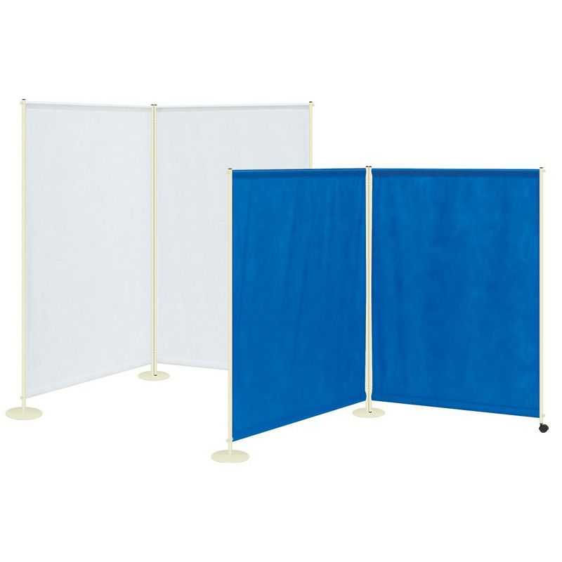 自由な角度に調節できるキャスター1個付きの連結ダブルスクリーンです。