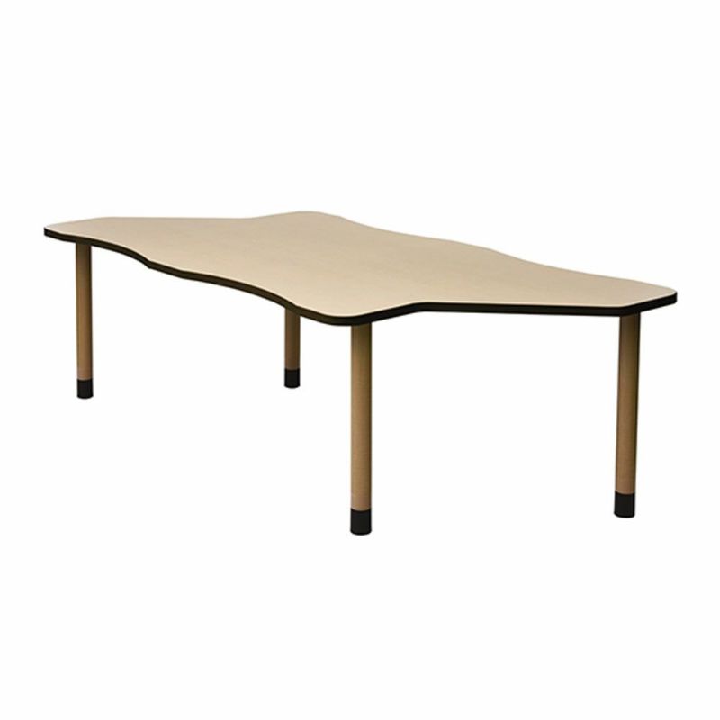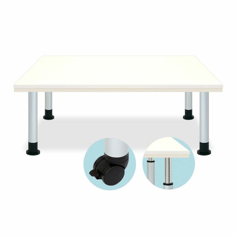 介護施設用の床面との隙間を微調整できるオリジナルアジャスターが付いた作業テーブル、ダイニングテーブルにお使いいただけます。 長さが210~240cmで選べます。