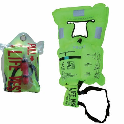 は、収納時は片手で持ち運びができるほどコンパクトで軽量な、水害の防災備蓄に適した災害用ライフベストです。