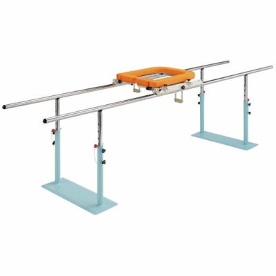 サークル型のマット装着で両方向への歩行訓練がスムーズに行える平行棒です。