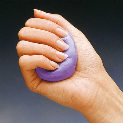 手指の筋力強化 エアパテ 青紫:最弱 4個セットは、手指の筋力強化に使用できます。色分けされた4種類の固さがあり、それぞれ混ぜ合わせることで固さを変えることができます。
