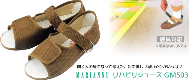 足を自由に動かせない方のために履きやすくデザインされたリハビリ靴(リハビリシューズ)です。リハビリ中の方に適しています。