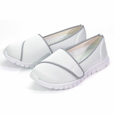 足を滑り込ませて履くだけです。衛生的ですね。足のカタチに近いラスト(木型)の採用で、足が靴の中で自然に収まり締め付けません。