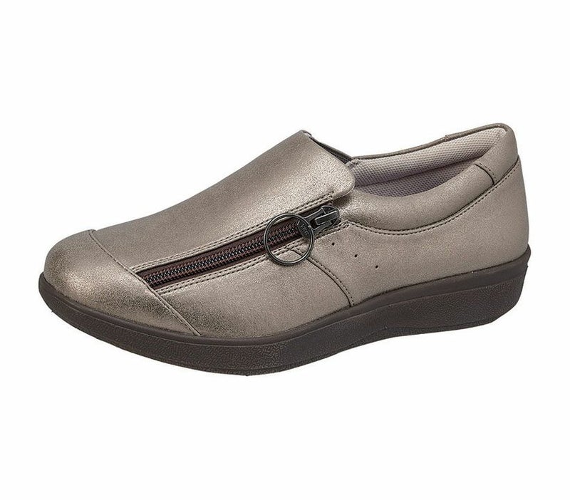 つま先が広くて丸い足囲4Eで、足先ゆったり。 かがまなくても履きやすい!やわらかハンズフリー。