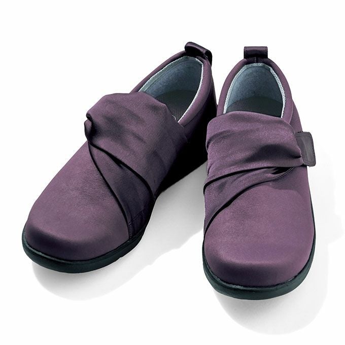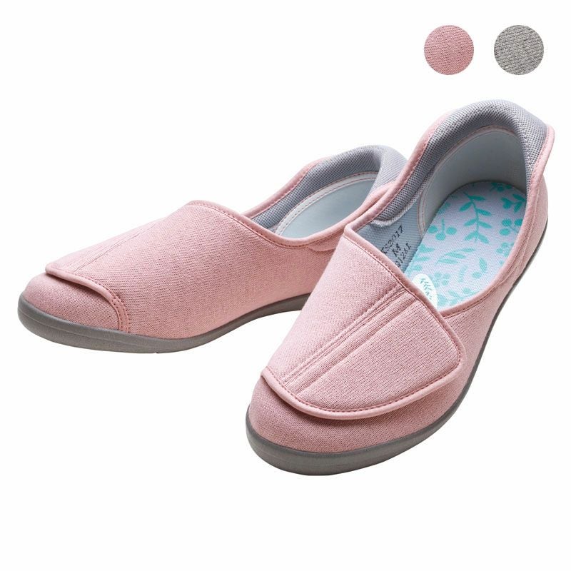 大きく開き踵のつまみで足入れらくらく。長い時間を室内で過ごすことが多い方の、足もとの安心安全、快適と健康のために。