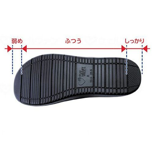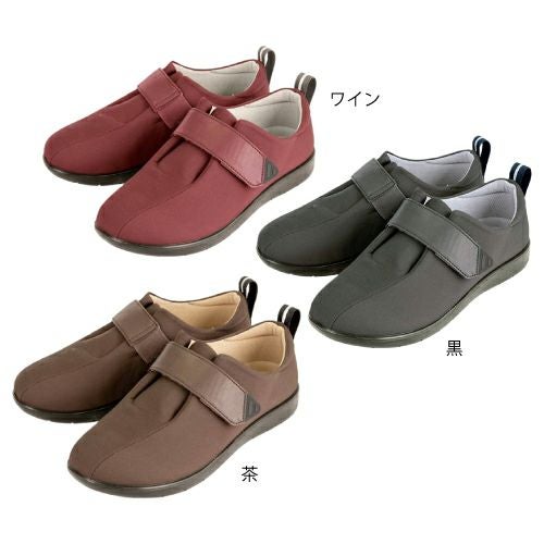 屈曲性とクッション性の良い超軽量のエクスパンセル(アサヒ独自の素材)を配合したラバーソールを採用した、ベルトファスナーで脱ぎ履きもスムーズなケアシューズです。