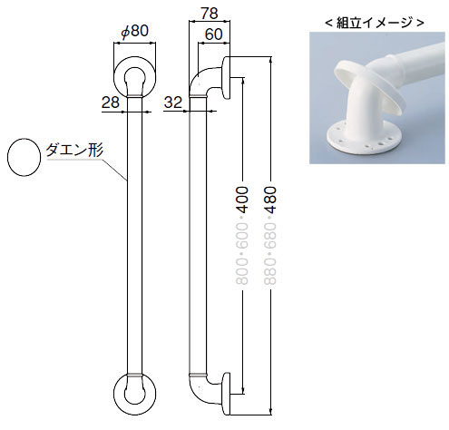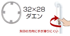 | 楕円形状 この手すりは断面が楕円形状をしています。 円周方向に力を入れた際に滑りにくいです。