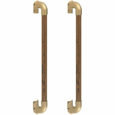 出隅二点手すり BR-863 長さ600 径32 室内補助手すり 2本セット は、角に取り付けることのできる出隅角用の手すりです。耐久性が高く、ブラケットは錆びにくいステンレス製です。