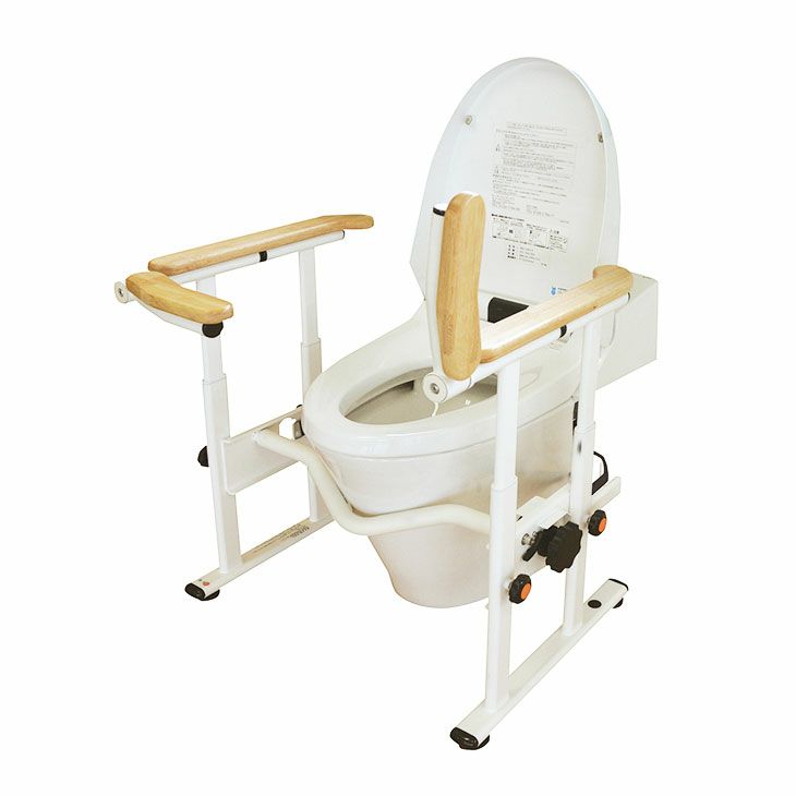 安心できる座位の保持と立ち上がりをサポートする、アームレストはね上げ式の洋式トイレ用手すりです。