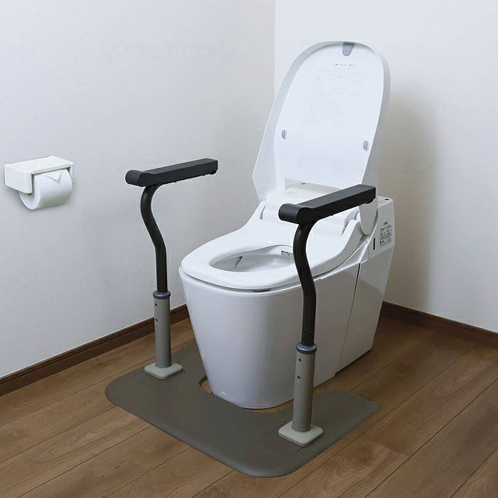 便器の前に据え置く構造なので、形状や材質に関係なく、どんなトイレ環境にも設置が可能です。 多彩なひじ掛け設定で、さまざまなトイレ環境や身体状況にぴったりフィット。