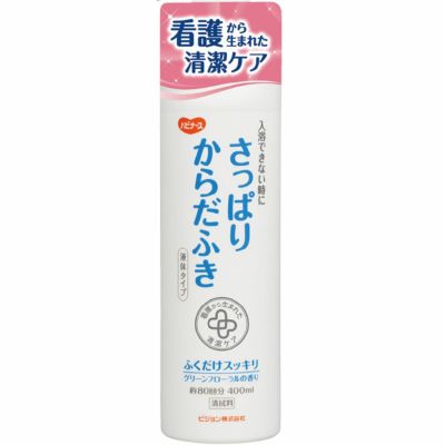 お湯に溶かしてふくだけで汗ばみがちなお肌をさっぱりさわやかに保つ、すすぎ不要の清拭剤4本セットです。