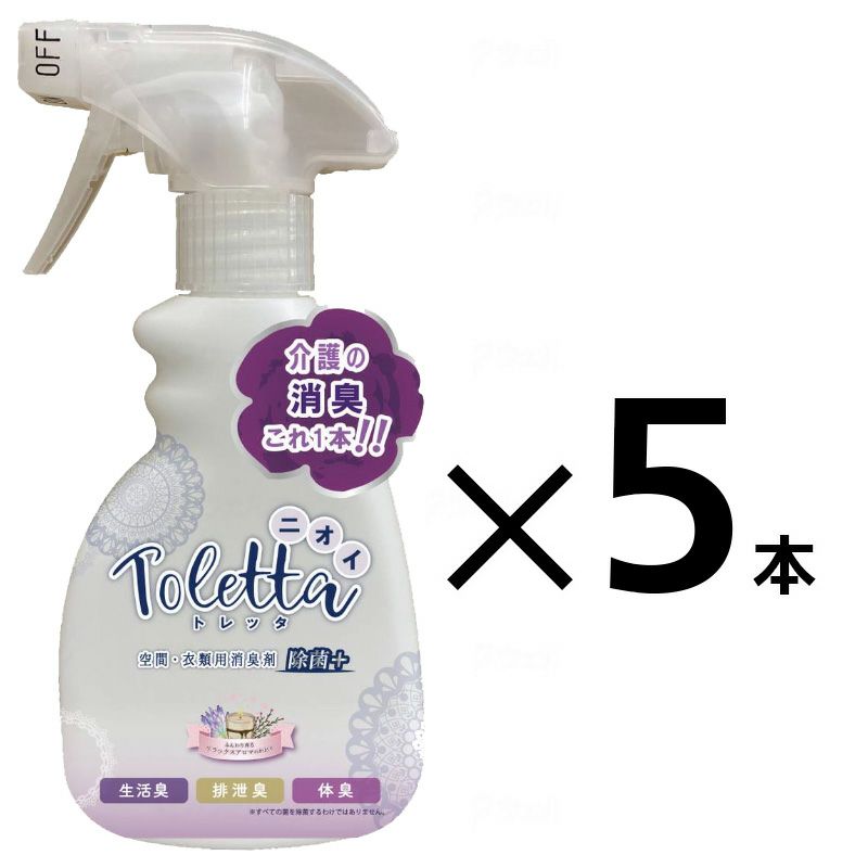 他の画像を見る ニオイToletta 空間・衣類用消臭剤除菌プラス 300ml×5本セット スクリオ販売価格 ¥ 4,389 税込 介護の消臭はこれ1本。ニオイの元に徹底アプローチします。くり返し使用でしみつき臭を防ぎます。 お気に入りに登録する