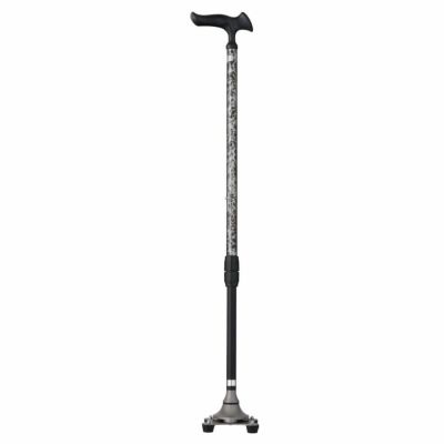 は、ベースが約10度の角度で360度回転する4点杖です。