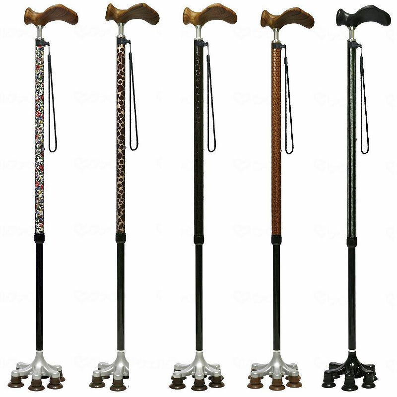 他の画像を見る 非課税 【非課税】アルミ製4点支柱杖 50シリーズ 4点杖 定価 ¥ 8,820 スクリオ販売価格 ¥ 6,200 税込 10段階の高さ調整が可能な握りやすく丈夫な、脚部までアルミ製の4点杖です。 お気に入りに登録する