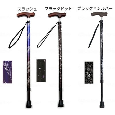 夢ライフステッキスリムネック 伸縮ベーシックタイプ柄は、長く握っていても、指が痛くならないスリムネックを採用。高級感のあるおしゃれな柄のステッキです。 末永く使っていただけるよう、取替え用の先ゴムを1個付属しています。