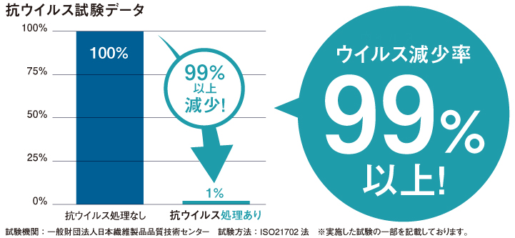 ※抗ウイルス・抗菌加工は、病気の治療や予防を目的とするものではありません。