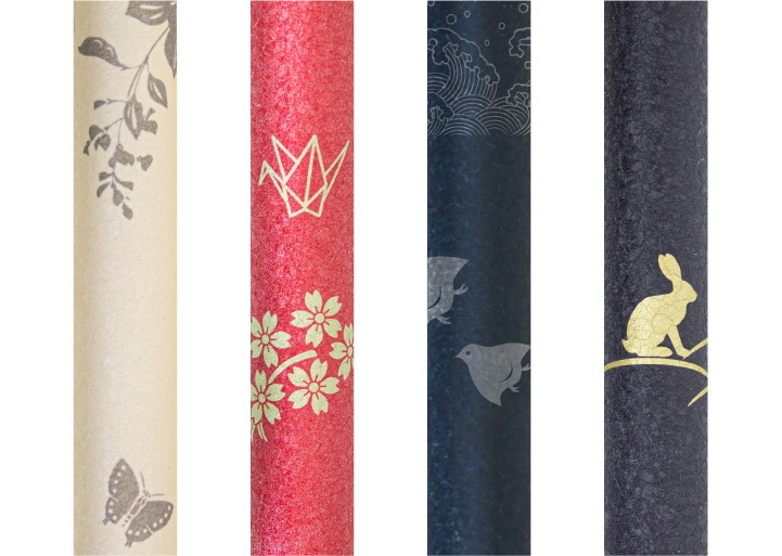 和紙を想わせる独特な風合いの杖には日本の伝統色をベースに、