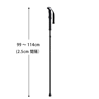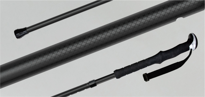 アクティブなスタイルにぴったりな、シンプルデザインのオールブラックカラー。登山用ステッキやウォーキングポールのような見た目のステッキなので、「ふつうの杖を持つのは気が進まない…」とお悩みの方にも取り入れていただきやすいアイテムです。