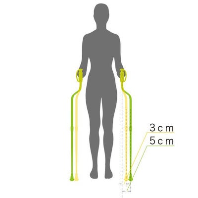 足に絡まないようグリップ手元より外側に、3cm又は5cmの2タイプの特殊曲げを用意、自分の歩行に合った形状を選ぶことが出来ます。