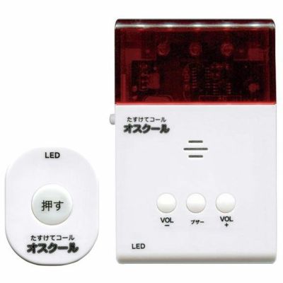 簡易緊急通報システム オスクール TVBC-36は、体の具合が悪くなったとき押すと、玄関先等に掛けた受信機のライトが点滅とともにブザーで周りの人に緊急を知らせることのできる簡易緊急通報システム(介護用呼び鈴・呼び出しベル)です。
