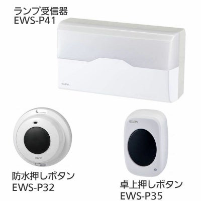 ワイヤレスチャイム インターホン ランプ受信器(EWS-P41)+防水押しボタン(EWS-P32)+卓上押しボタン(EWS-P35)セット