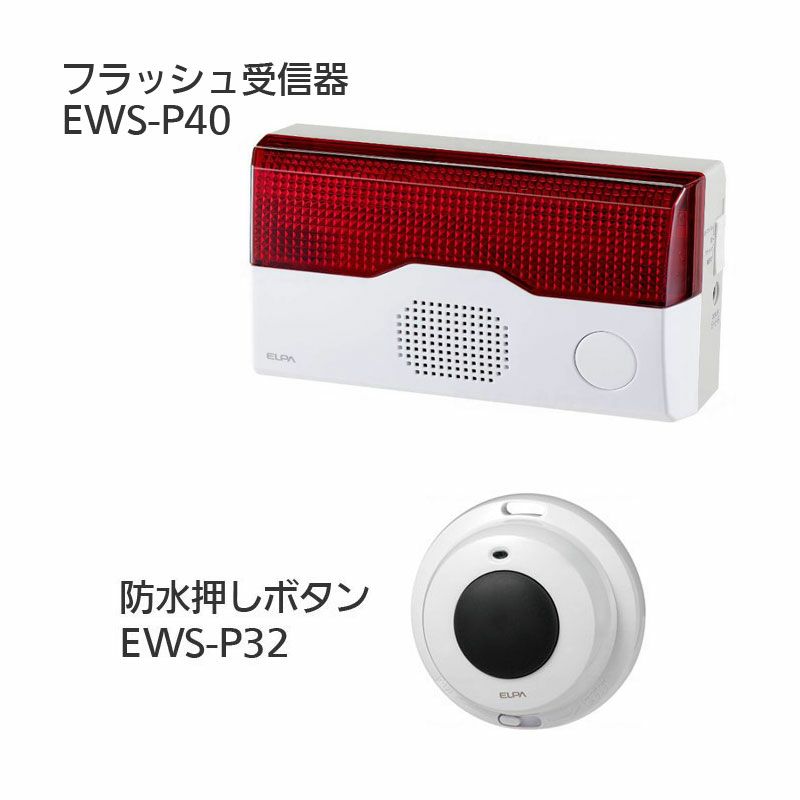 ワイヤレスチャイム インターホン フラッシュ受信器(EWS-P40)+卓上押しボタン(EWS-P35)セット