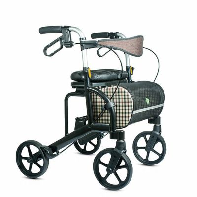 簡単な持ち運び、収納、ブレーキ操作なので扱いやすいですね。 座り心地の良い座面に幅広バックストラップで休憩時も安定します。 軽量で大きなタイヤによる安定歩行は疲労の軽減になりますね。 大きな人向け仕様でゆったり幅のより大きめサイズ。男性にも活用していただきたいですね。 折り畳み式で自立して場所をとりません。