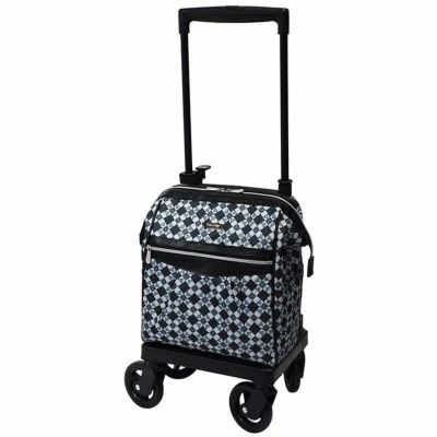 アルミフレームで軽量、持ち運びに便利。 タイヤ直径約10cmの4輪でベアリング入り、360度回転キャスターで動きがスムーズ。 保冷仕様のバッグはガマ口風に大きく開き、荷物の出し入れが簡単。