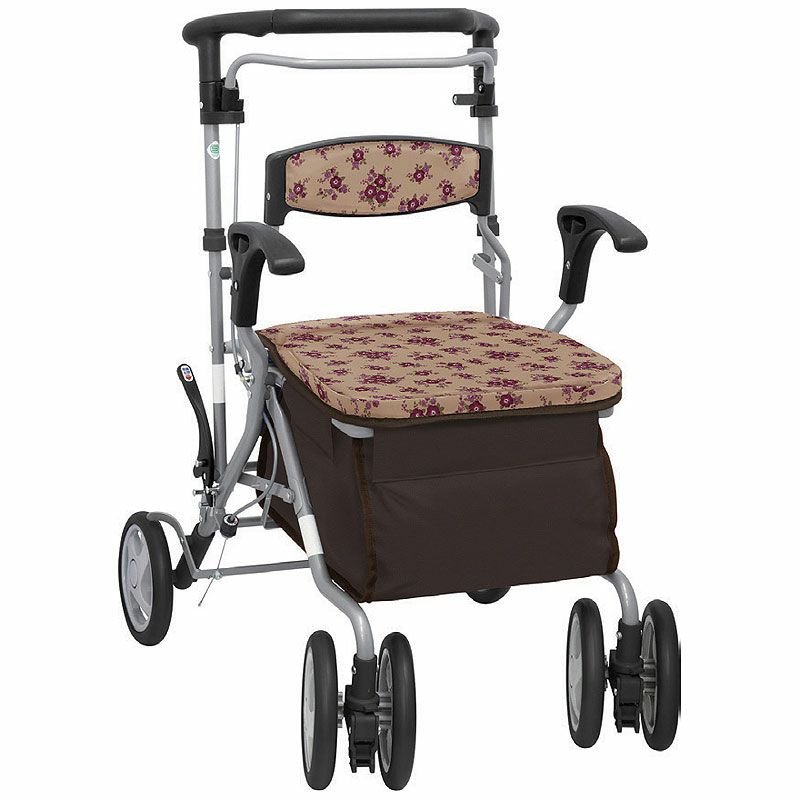 前輪2WAYキャスター付(固定・120度)で方向転換もスムーズ。背もたれ付でゆったりお座りいただけます。