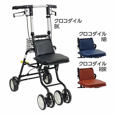 黒を基調にしたシックな仕上げです。 背もたれ・座面はクロコダイルBKで高級感があるかっこいいシルバーカーですよ。