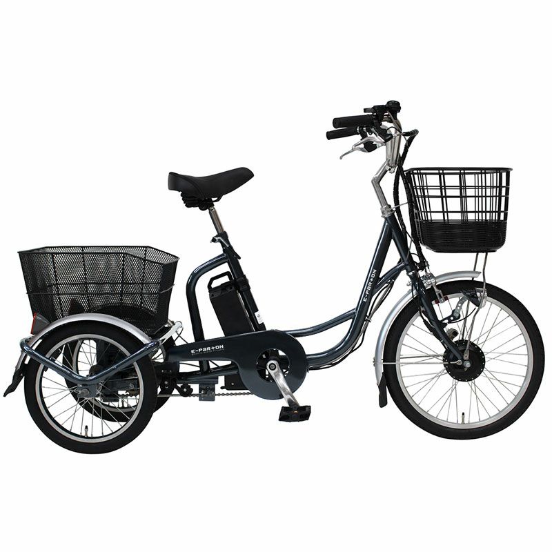 他の画像を見る 送料一律対象外 電動アシスト三輪自転車 E-Parton 定価 ¥ 242,000 スクリオ販売価格 ¥ 204,600 税込 スイング機能搭載の大人用・高齢者向け電動三輪自転車です。前後にカゴが付いていてたっぷり積めます。電動だから足の負担も少なく、毎日のお買い物が楽しくなりますね。 お気に入りに登録する