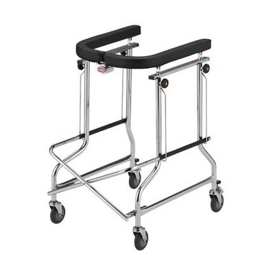 ■歩行速度の調整が行える抵抗器付きです。 ※ノブネジで抵抗を調整できます。 その他の機能 ■コンパクト・安全設計。病院、施設、在宅も。 ■幅78cm以上の廊下で回転が可能です。 ■保管場所は他の歩行補助器の1/3になります。 ■操作性にも優れています。