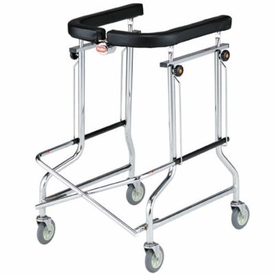 コンパクトに折り畳め保管場所を選ばない折りたたみ歩行器です。施設の廊下やベッドサイドなど様々な場所に置けますね。