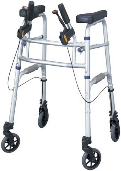収納に便利な歩行補助器(歩行器)です。安全、簡単に止まれるバー形状のグリップ・ブレーキが付いて安心ですね。
