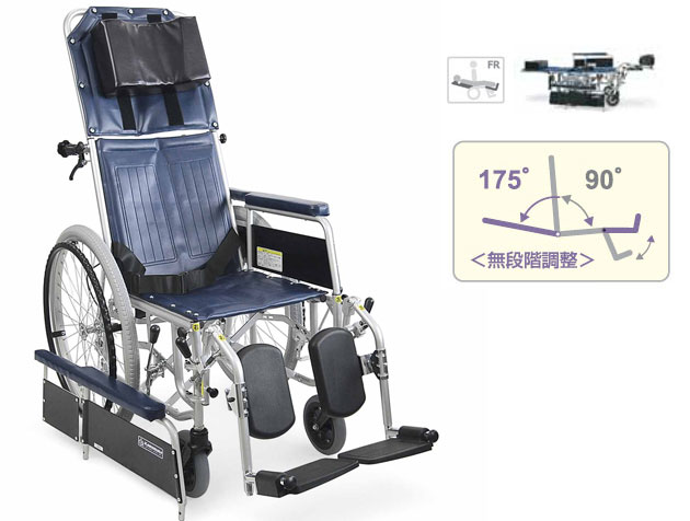 リクライニング・スチール製車椅子自走用 RR42-NB 介助ブレーキつき は、スチール製でフルリクライニングの定番の車いすです。簡易ストレッチャーとしても使用できます。