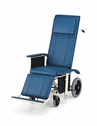 スチール製 フルリクライニング車椅子 NHR-16は、ビニールレザーシートとノーパンクタイヤを採用した介助用フルリクライニング式車いすです。