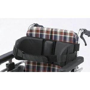 車いすの背もたれに簡単に着脱できます。ほとんどの車いすに装着可能です。